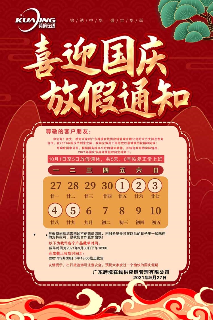 跨境在线:国庆节放假通知